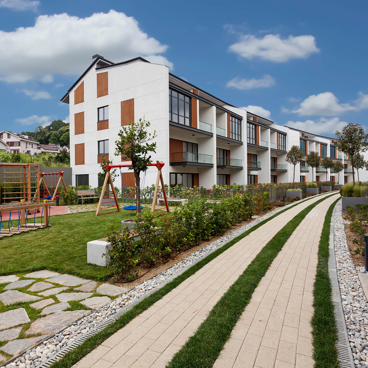 The project, which was completed on an area of 467,000 square meters, was designed in Zekeriyakoy, Istanbul, a world-renowned and award-winning British architectural group. The area is as simple as a village and elegant as a city, there are different types and sizes of housing options starting from 1+1 to 6+1. The project has approximately 1,167 residences in 3 phases and an area of approximately 15,000 square meters, it has a natural forest area of 118,000 square meters. square, which provides opportunities for dining, drinking, entertainment and shopping.